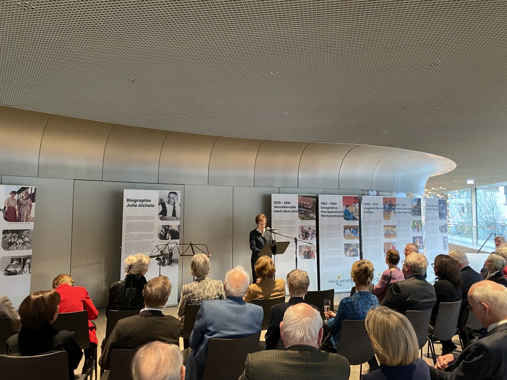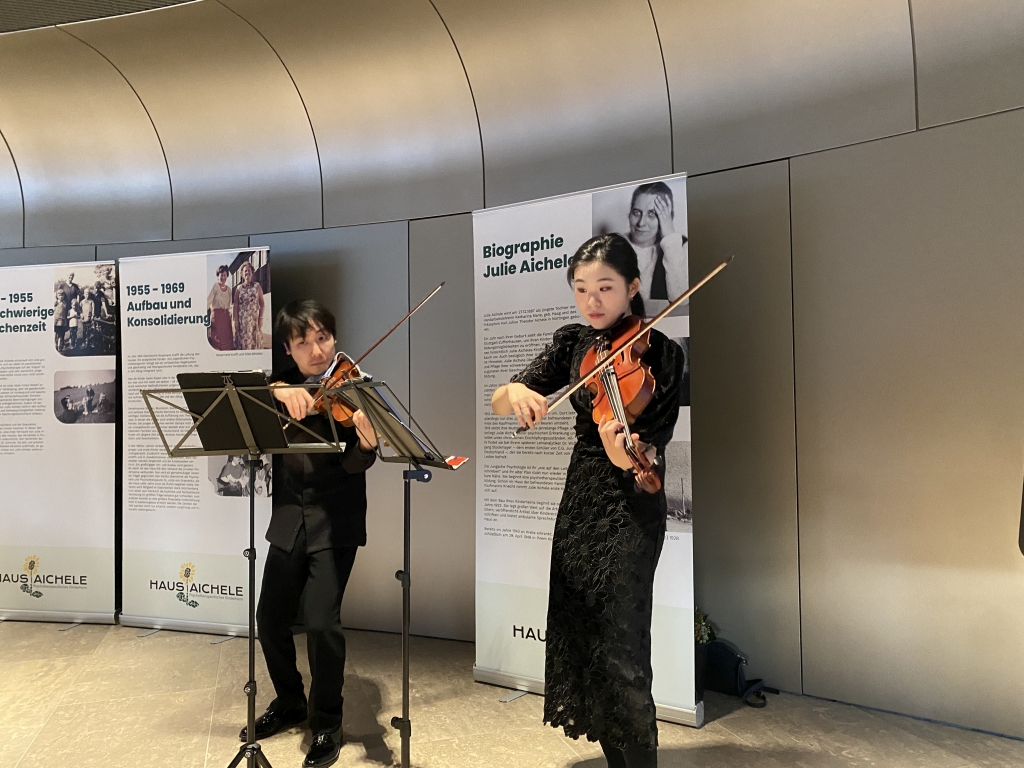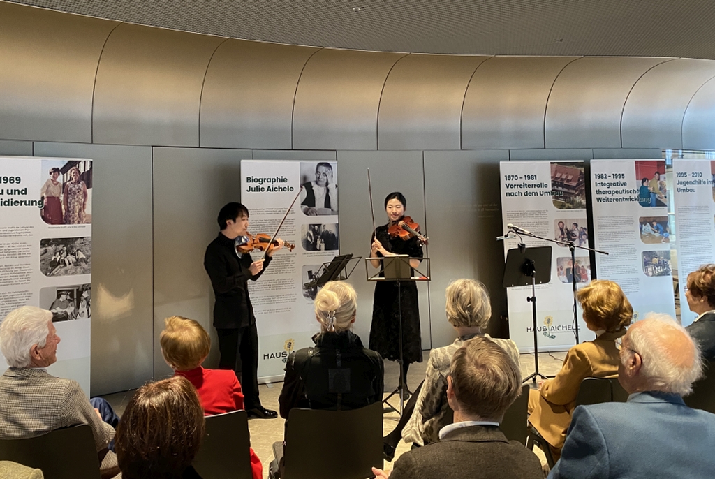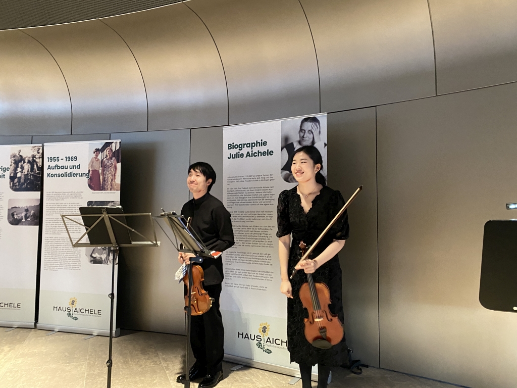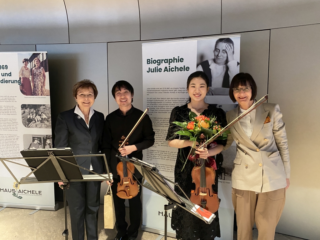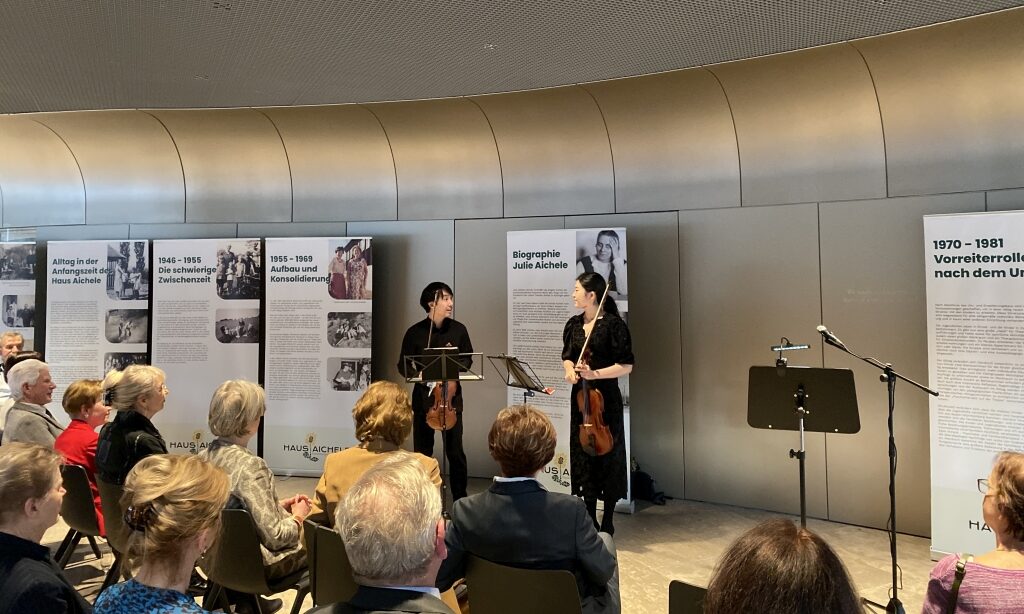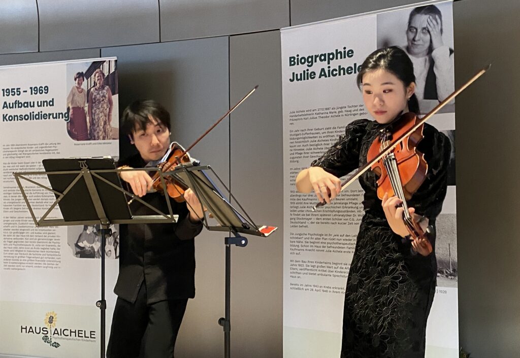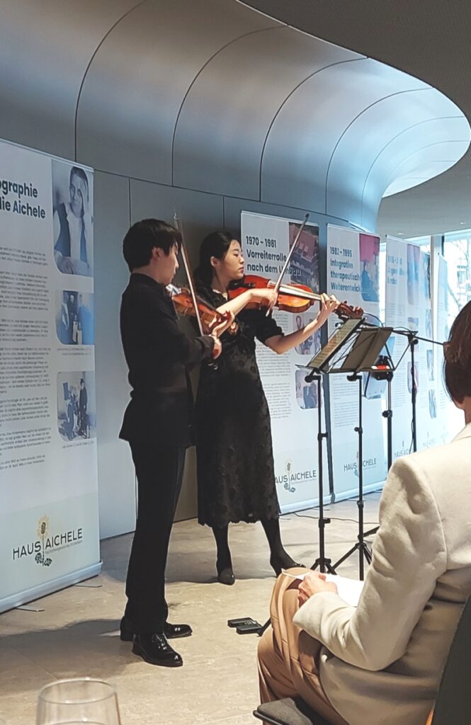 Am 1. März 2024 lud der Vorstand der Lore Buscher-Stiftung zur Gründungsfeier ins Casals Forum in Kronberg im Taunus. Vor rund 100 Gästen skizzierte Lore Buscher den langen Weg bis zur Anerkennung ihrer Stiftung. Sie beleuchtete die Arbeit der Organisationen, die gefördert werden können, mit besonderem Fokus auf die spannungsreiche Geschichte des Hauses Aichele. Für den musikalischen Höhepunkt der Feier sorgte die preisgekrönte Solistin Hayang Park auf der Viola, begleitet von Stephen Kim auf der Violine. Beide studieren an der Kronberg Academy. Bei leckeren Häppchen stießen die Gäste anschließend auf die neue Stiftung und den gelungenen Abend an.
